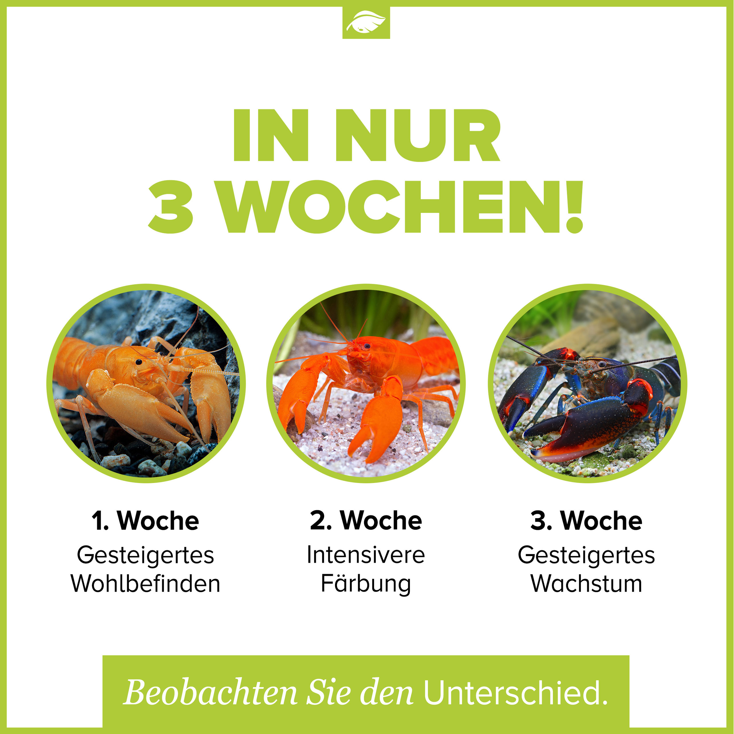 Füttern Sie 1-2-mal täglich so viel, wie die Tiere in wenigen Minuten aufnehmen. Sparsam füttern, in der Regel reichen je nach Größe der Krebse 1-3 Sticks pro Krebs.