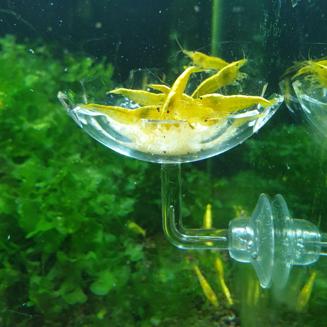 Die Futter-Blume wird einfach an der Aquarienscheibe befestigt und ermöglicht eine komfortable, saubere Fütterung – perfekt für Zucht- und Schauaquarien.