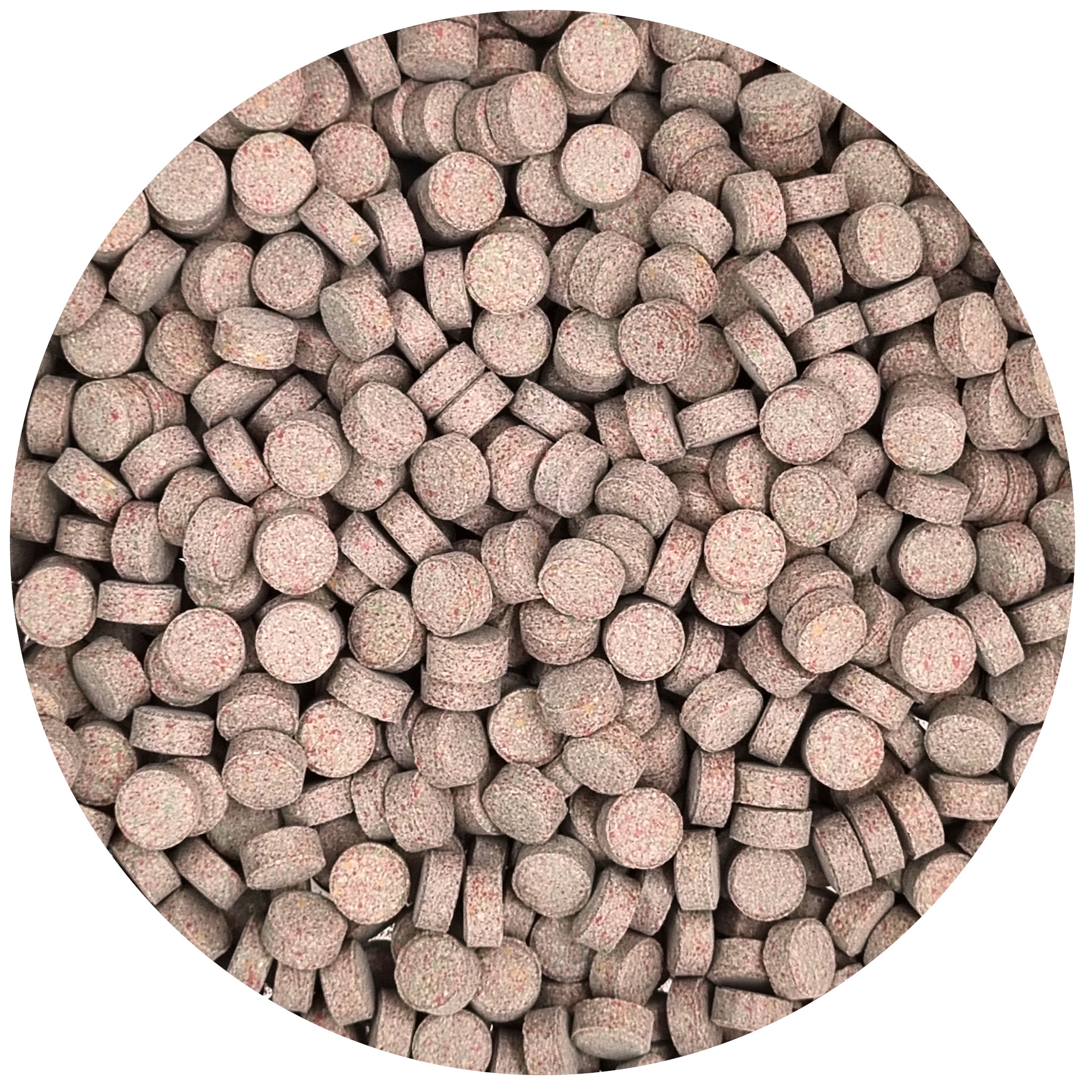 In diesen Futtertabletten befindet sich ein Anteil von 15 % gefriergetrockneter Futtertiere.