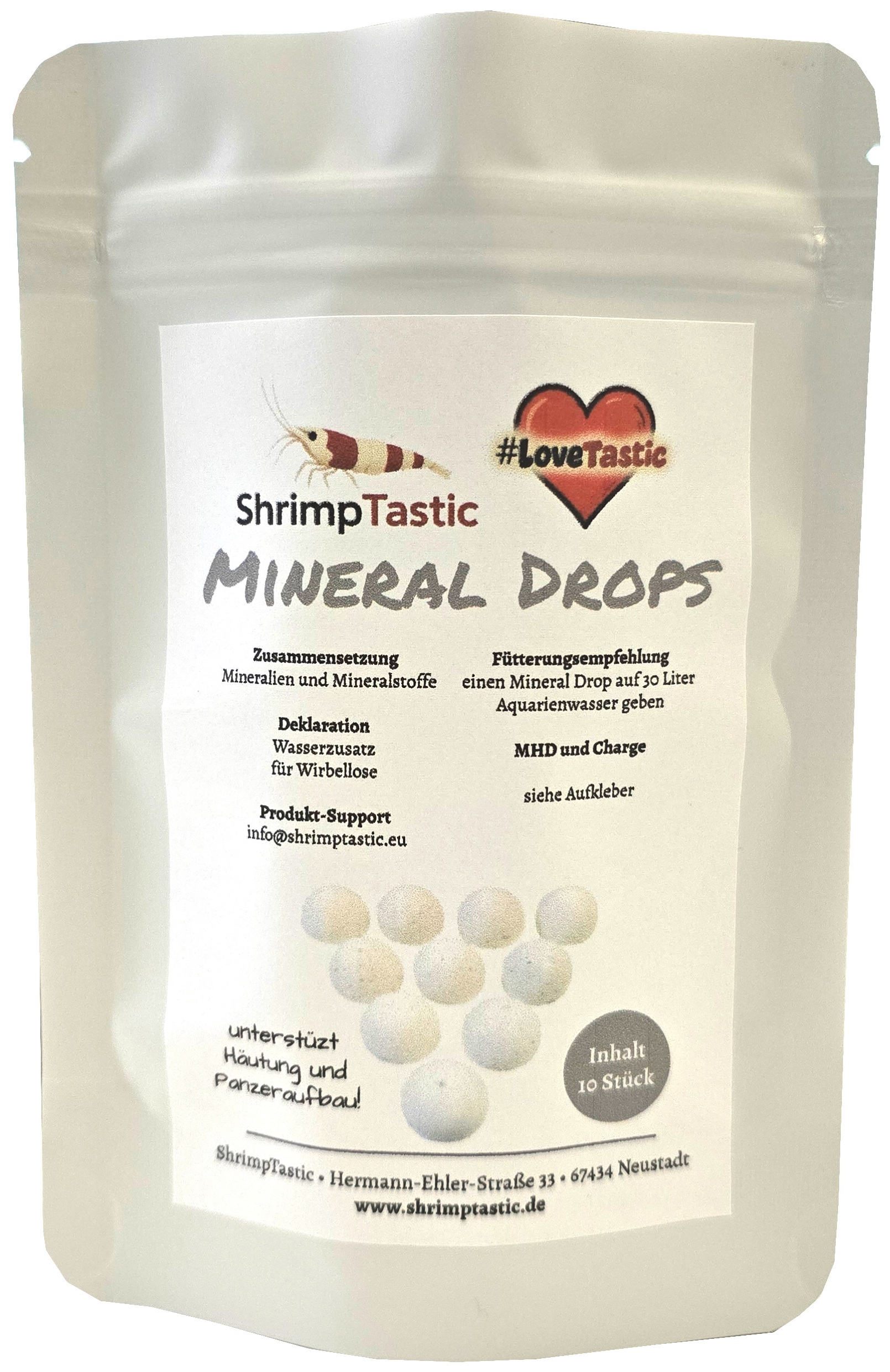 Unsere ShrimpTastic Mineral-Drops sind die ideale Lösung, um Garnelen, Schnecken und Krebse zuverlässig über mehrere Tage mit wichtigen Mineralien zu versorgen.
