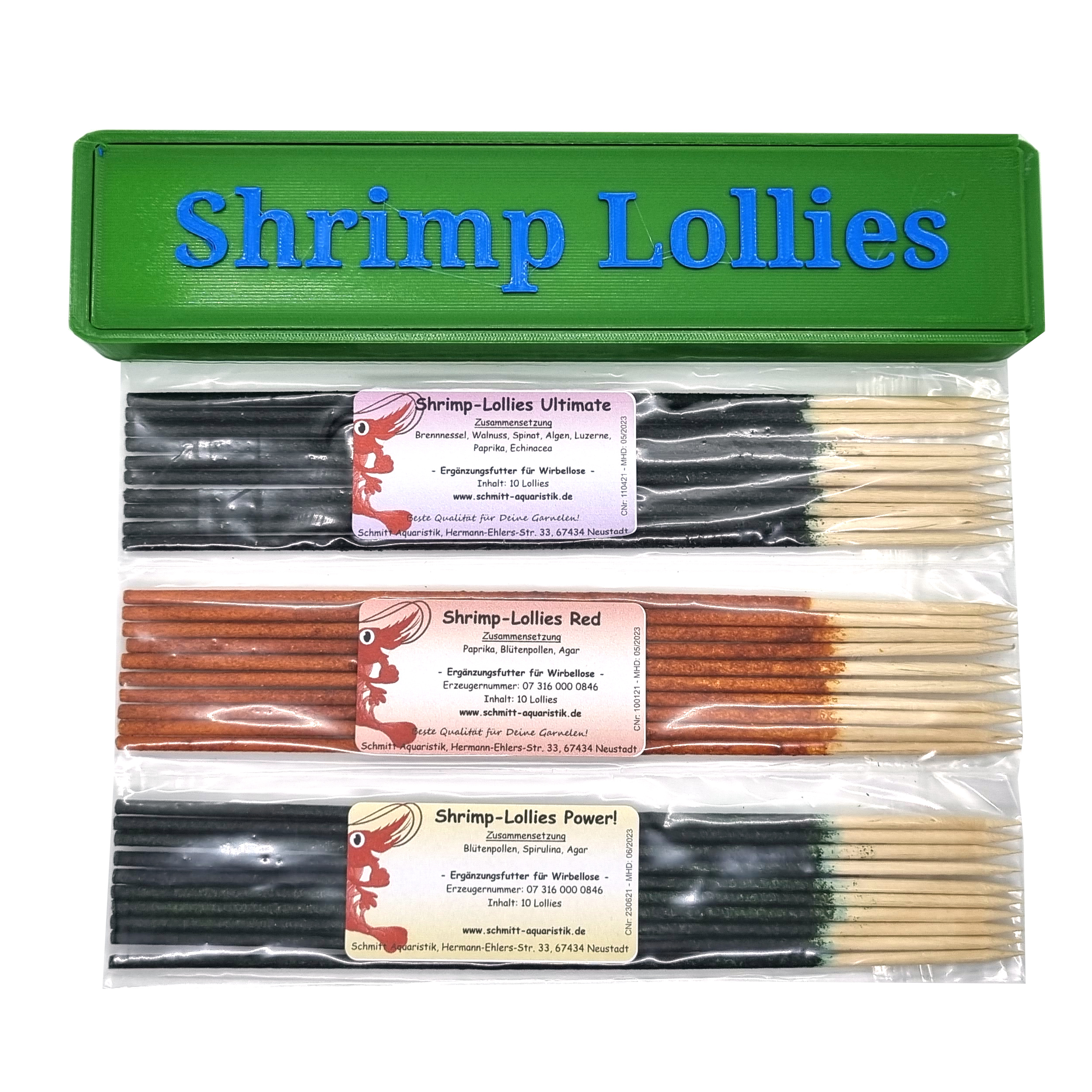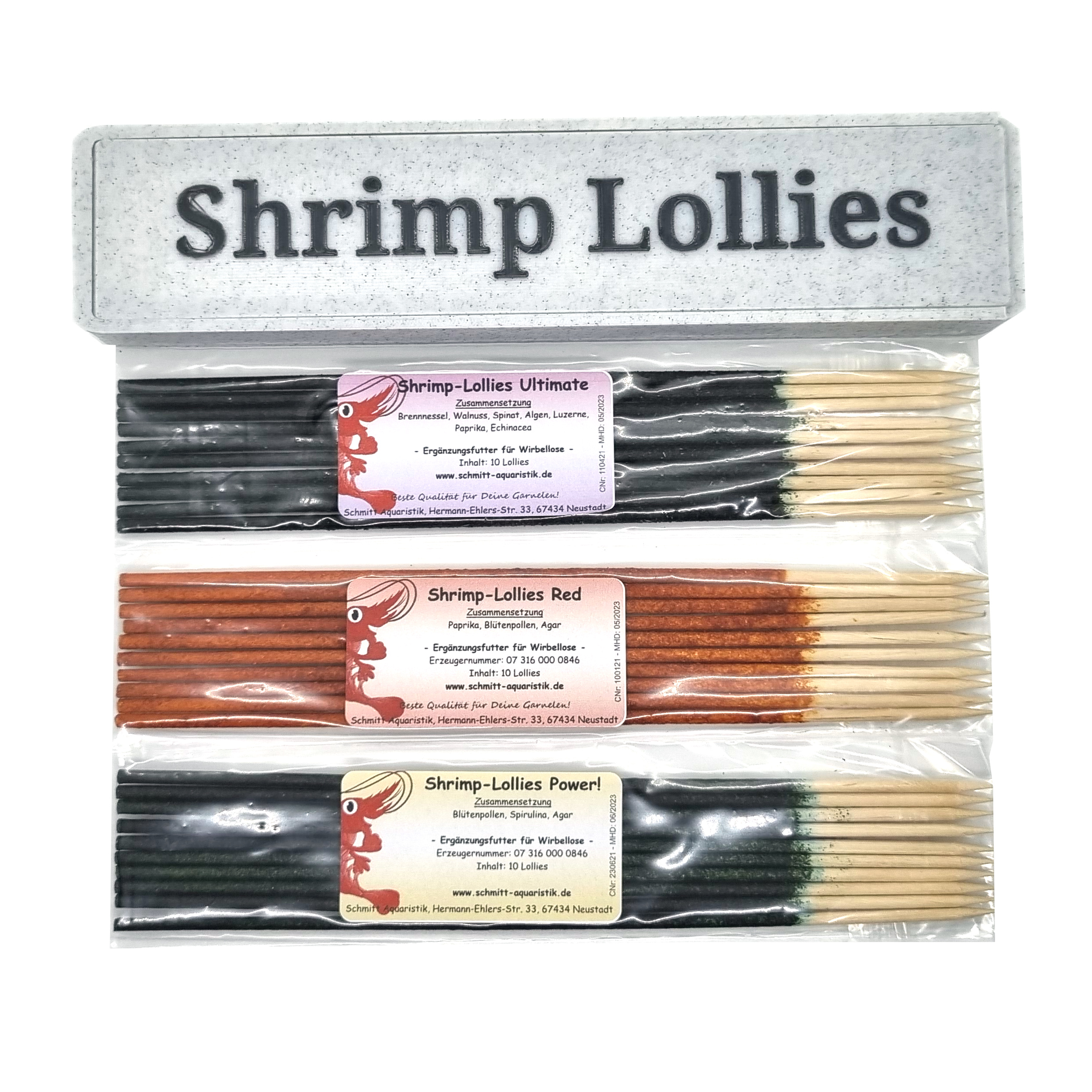 eine Packung Shrimp-Lollies Power!