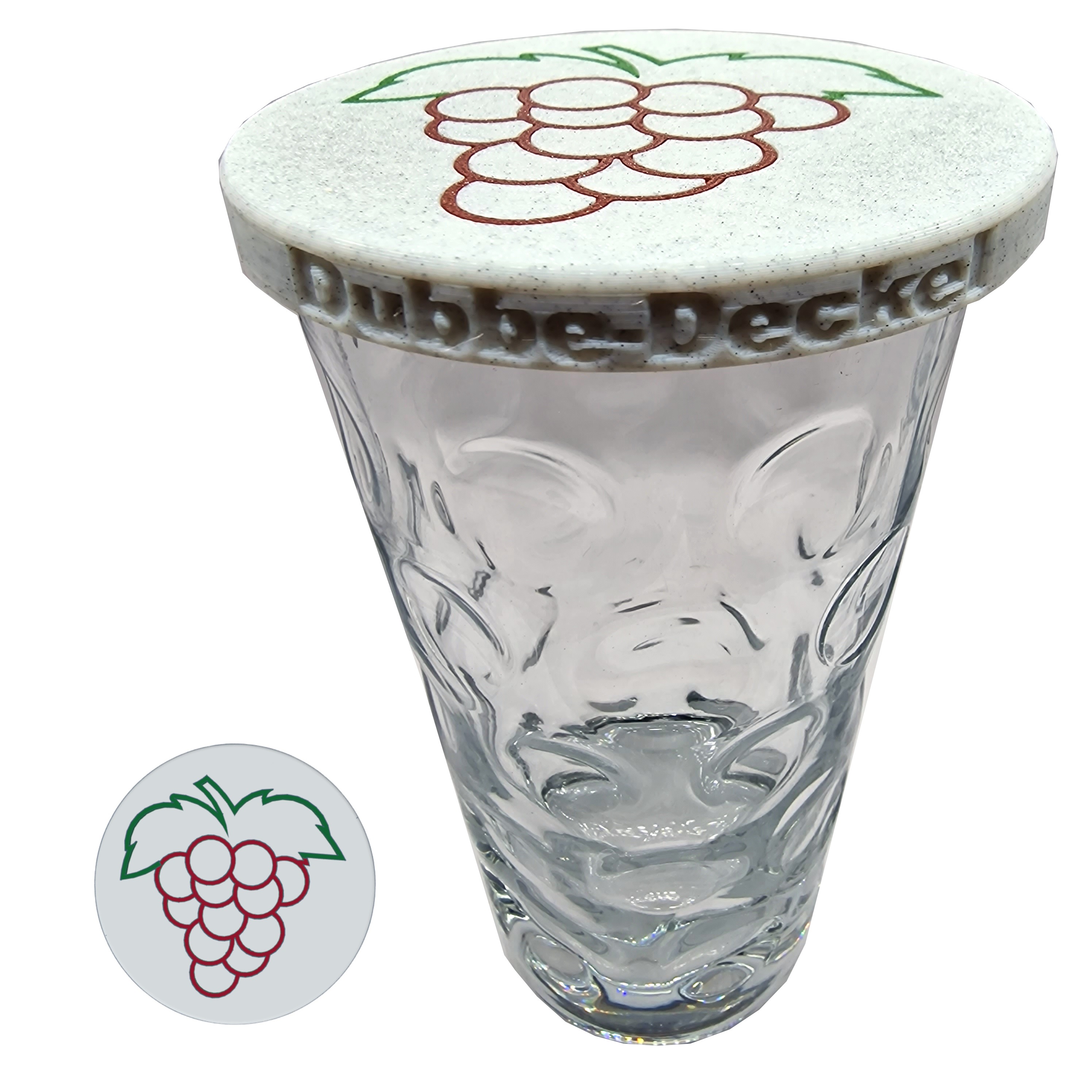 Unsere Dubbeglas-Deckel passen auf die 0,5L-Dubbegläser und schützen die gute Schorle vor Insekten, Bienen, Wespen und anderen Eindringlingen.