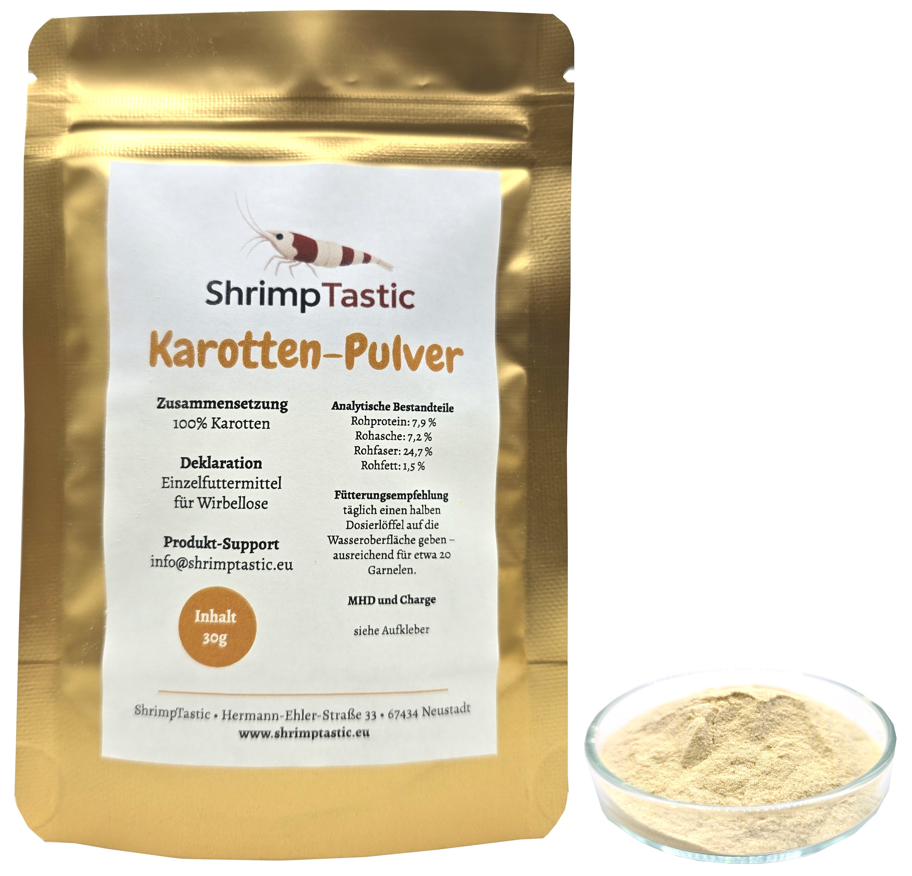 Karotten-Pulver – Naturfutter für Garnelen & Schnecken