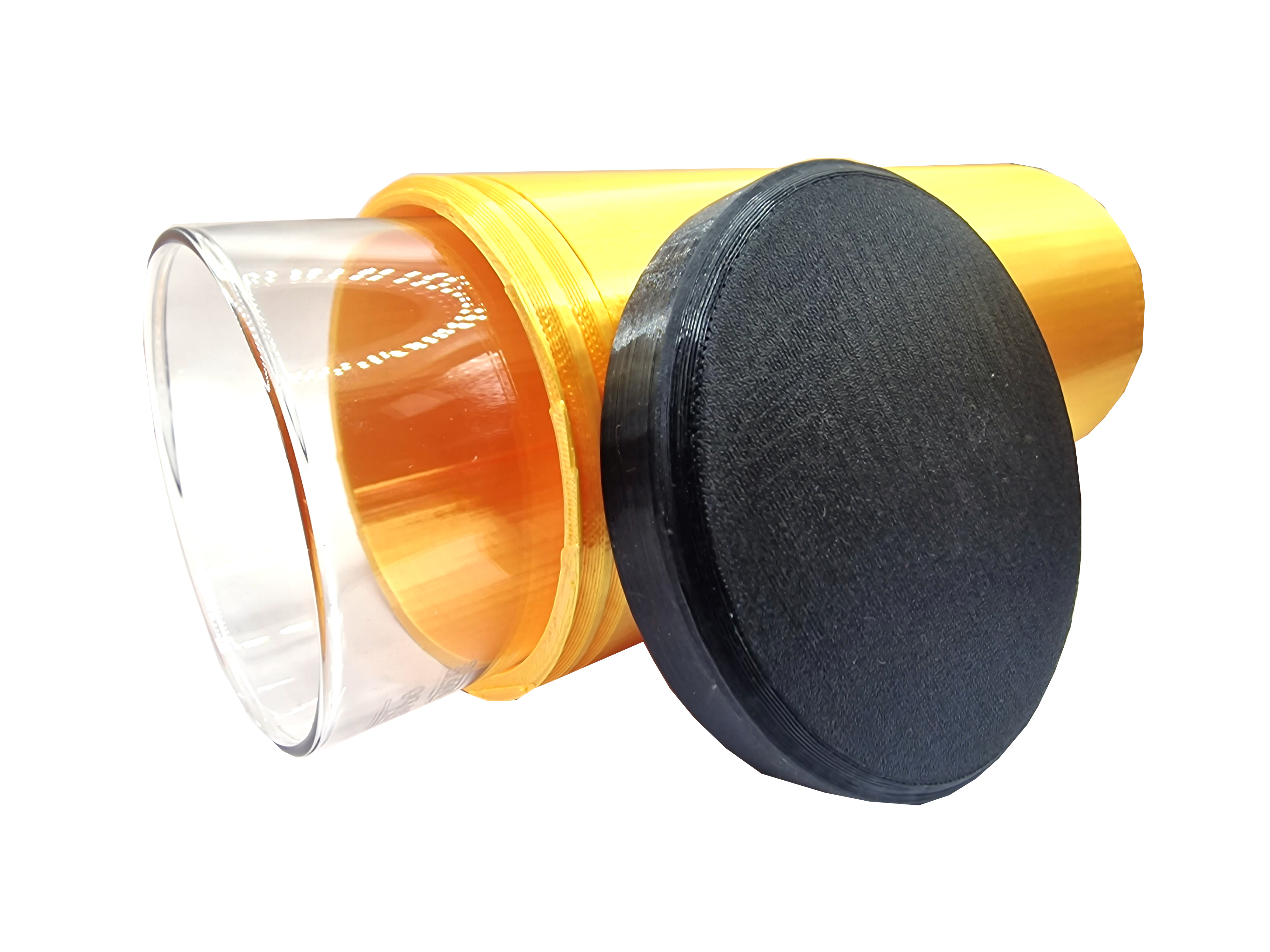 Der Behälter ist nicht zum Befüllen mit Flüssigkeit gedacht, sondern nur zum Transport des Schobeglases.